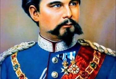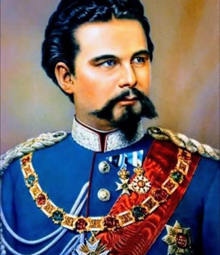 Das erste Bild zeigt, unseren geliebten König Ludwig II von Bayern, das zweite Bild zeigt, unseren geliebten Onkel Ludwig II zu seinem 50. Geburtstag – beschenkt mit einem feierlichen Männergetränk.