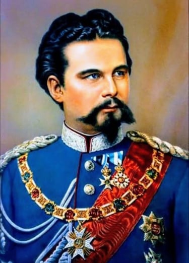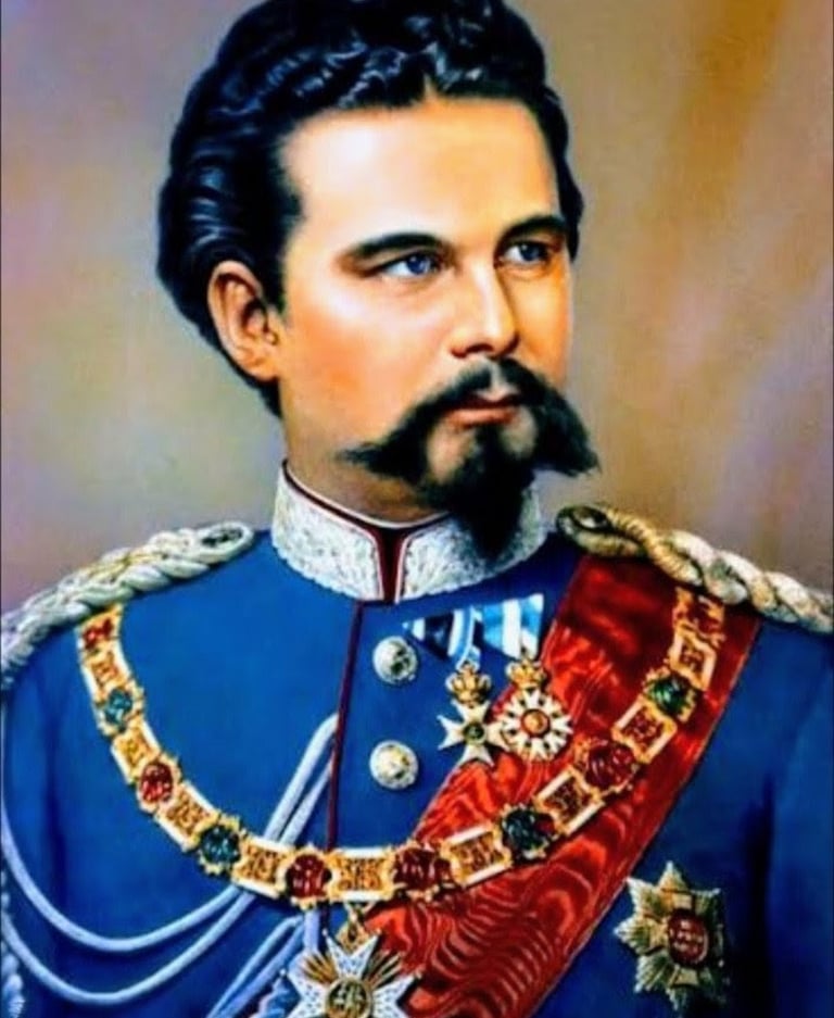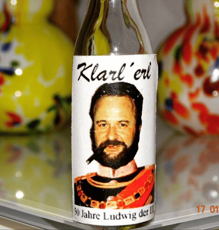 Das erste Bild zeigt, unseren geliebten König Ludwig II von Bayern, das zweite Bild zeigt, unseren geliebten Onkel Ludwig II zu seinem 50. Geburtstag – beschenkt mit einem feierlichen Männergetränk.